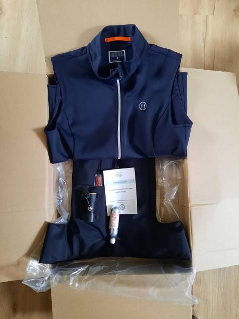A vendre airbag Hitair taille 2 reviens du japon après réparations et expertise comme NEUF encore dans l'emballage (facture a l'appui, changement intégrale de la membrane interne et du tissu) + veste compatible harcour Senjo Taille L + 1 cartouche 50cc + attache selle