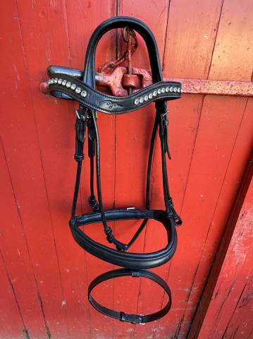 Bridon noir, Montants ronds, Marque Dyon, Double muserolle, Têtière ergonomique, Taille COB, Degreef Il est neuf sans étiquette.