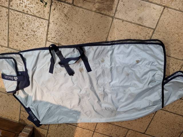 Couverture bucas big neck 0g 155cm portée une journée/nuit au box.