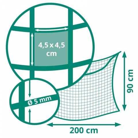 Filet à foin rectangulaire de VOSS.farming, sac filet à foin de 200 x 90cm, largeur des mailles 4,5 x 4,5cm