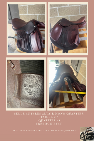 Je vends cette selle Antares Altair mono quartier pour cheval, de taille 17 pouces.