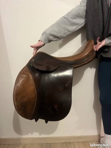 Selle d’occasion CSO Bruno Delgrange, taille 17,5 appartenu au cavalier pro Christophe Décret .