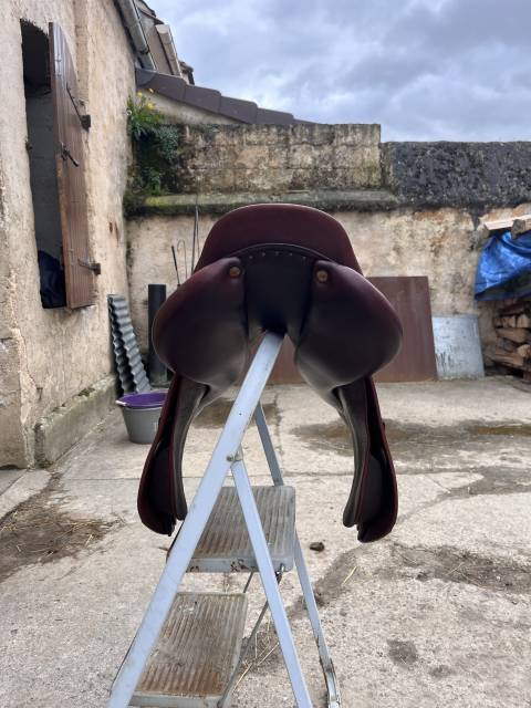 Selle Marianne creuse doublée veau en très bon état vérifiée par meyer en 2025 idéale pour les chevaux avec du coffre